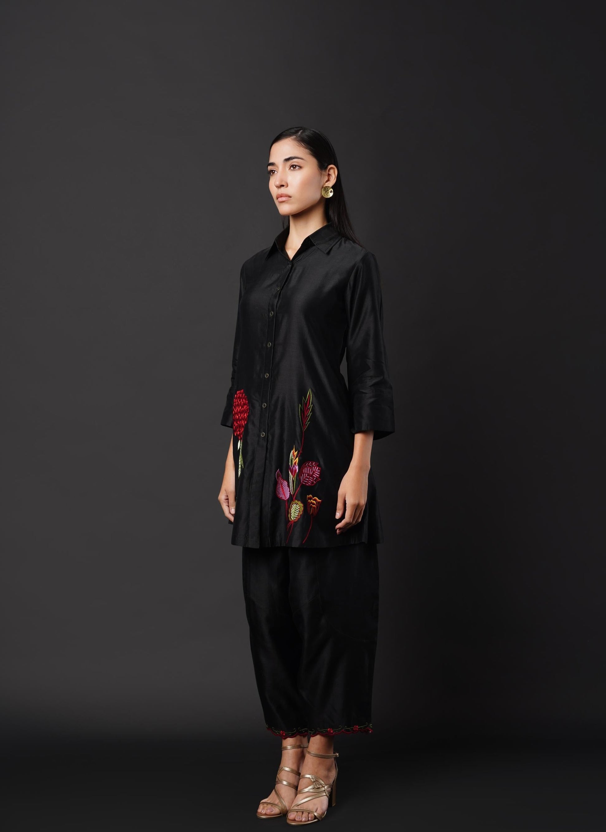 Black Co-ord Set with Embroidery on Both Sides, Paired with Indo-Pants