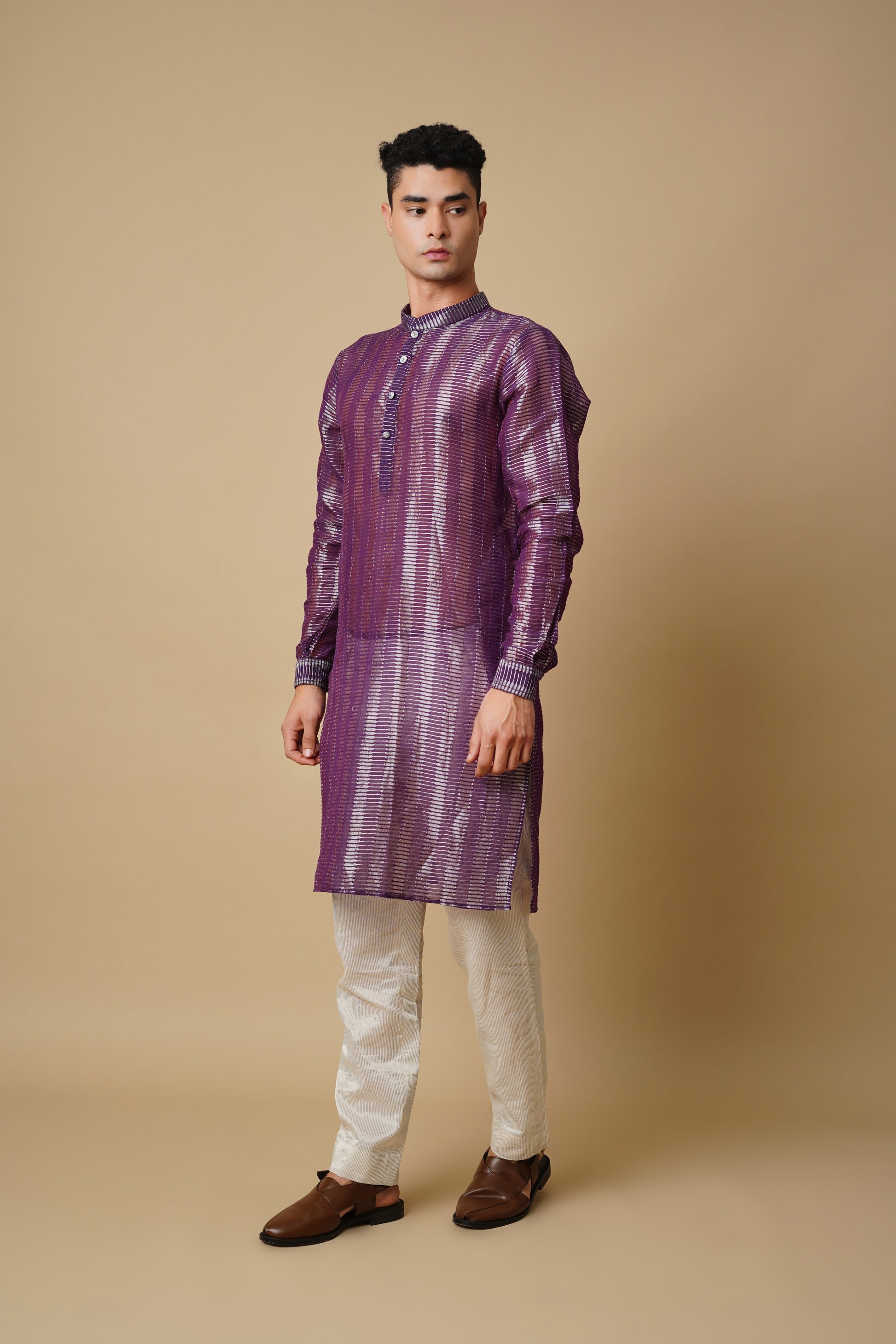 Embrace the allure of traditional Indian craftsmanship with this Kurta Set in Handloom Tissue Chanderi, ensuring you radiate sophistication and grace on every occasion.